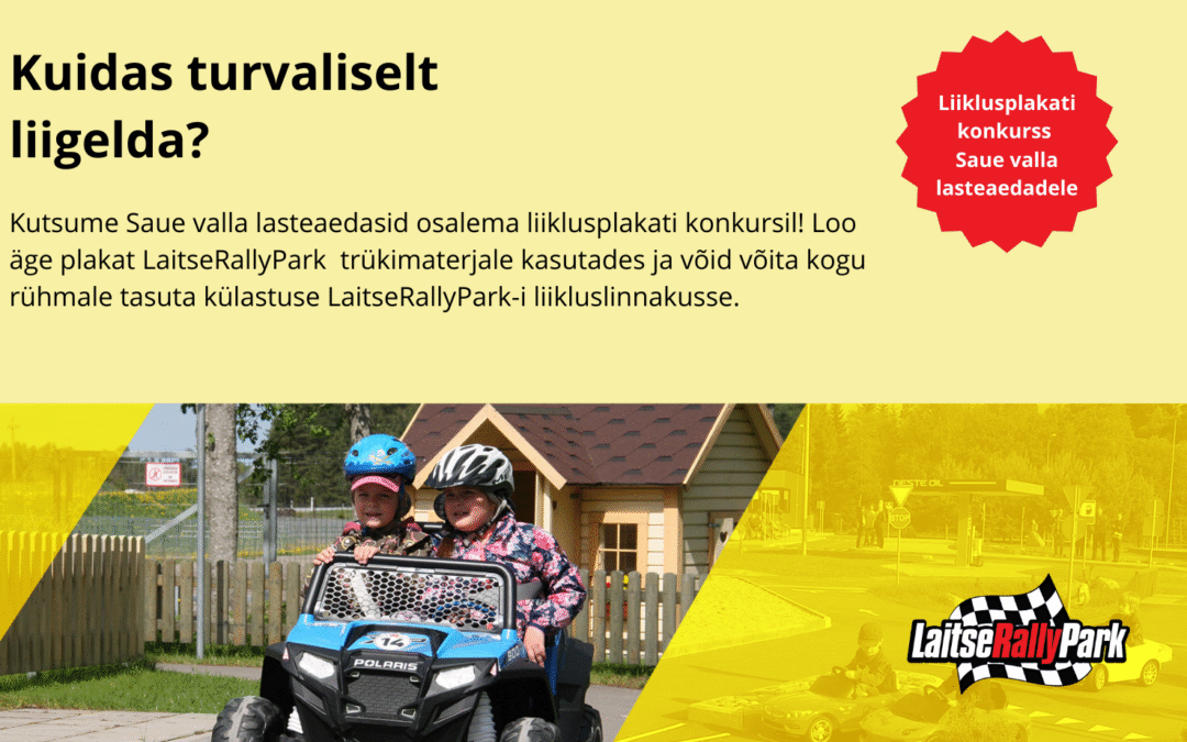LaitseRallyPark koostöös Saue vallavalitsusega korraldab autosõidu eelkooli noortele. Tegemist on 10-st koolituskorrast koosneva autosõidu algõppega 14- kuni 16-aastastele Saue valla noortele, kus laps saab esimese kogemuse auto käsitlemisel: paigaltvõtt,...